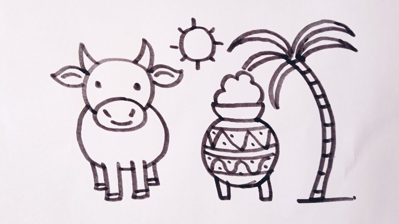 Pongal Festival Drawing Easy Cow And Pot Drawing Step By Step Pongal Special Drawing Youtube
